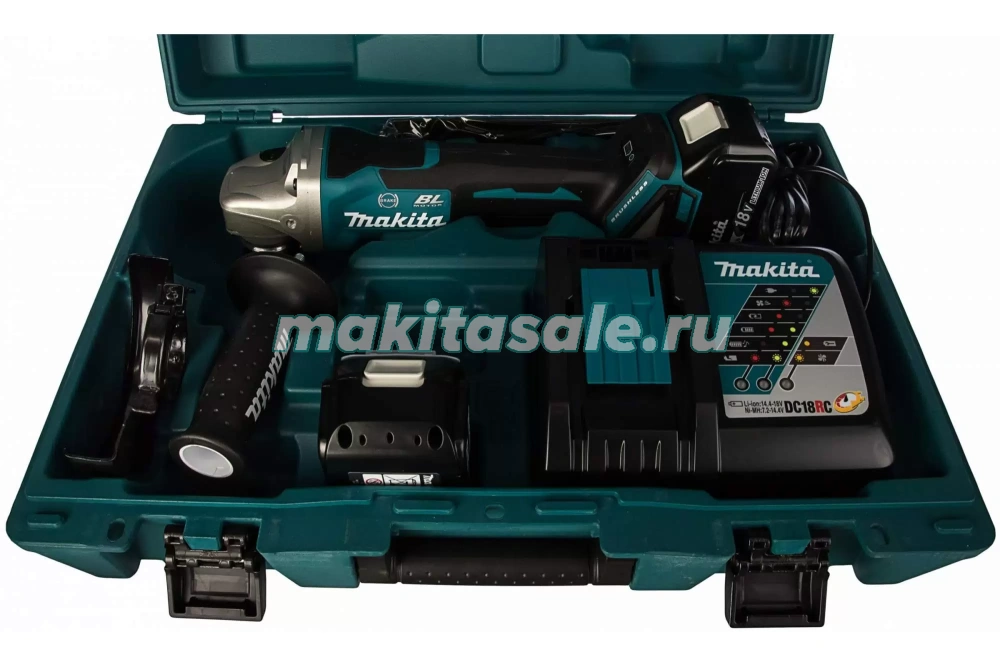 Особенность комплектации этой аккумуляторной болгарки – 2 литиевых аккумулятора 18В емкостью 4Ач, зарядное устройство и чемодан. Эта модель, появившаяся на рынке в 2017 году, предоставляет своему пользователю целый набор преимуществ: