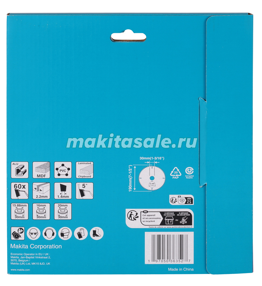 Пильный диск универсальный для алюминия/дерева/пластика, 190x30x2.2/1.4x60T Makita D-81387