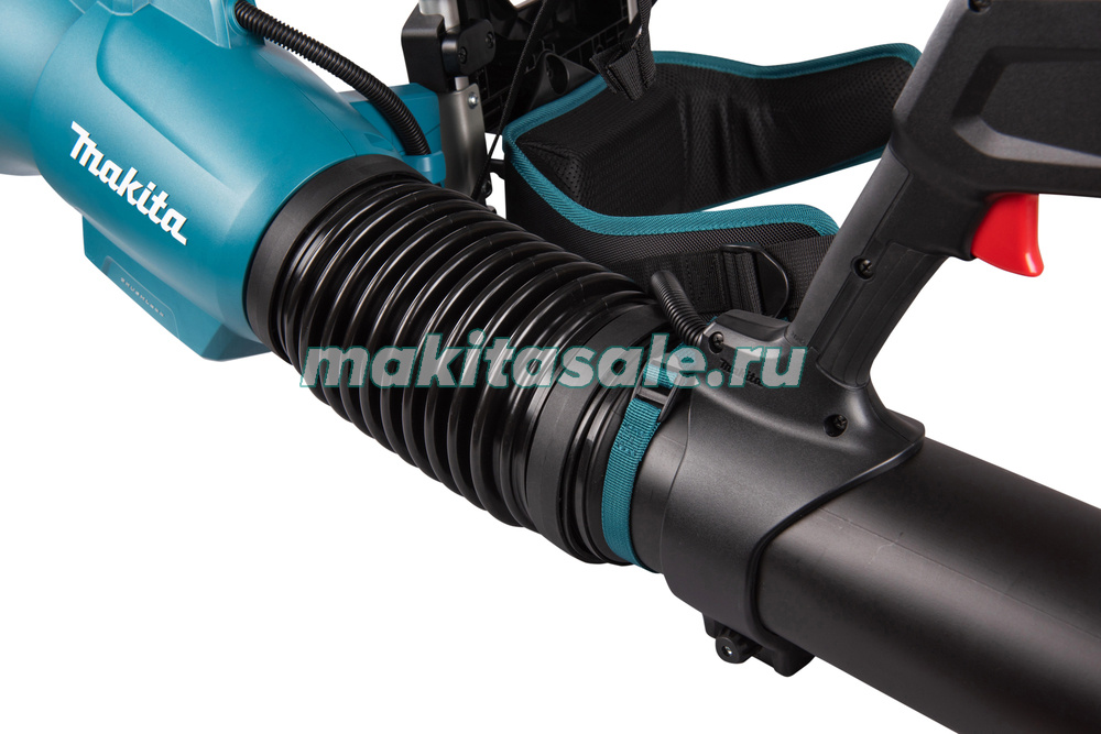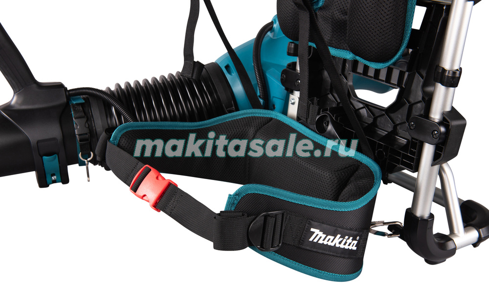 Makita представляет новую ранцевую аккумуляторную воздуходувку, которая работает от ранцевого аккумулятора. Данная модель станет прекрасной альтернативой бензиновым аналогам. Новое расположение двигателя позволило снизить потери объема и скорости воздуха. Широкие наплечные ремни равномерно распределят вес инструмента на плечи оператора. Инструмент полностью лишен вибрации, что делает работу максимально комфортной. В жаркую погоду инструмент не нагревается, как бензиновый аналог. Больше не возникнет проблемы с повторным запуском, если двигатель заглох (управление вынесено на рукоятку). Больше не придется обслуживать ДВС. Максимальное шумовое давление составляет 82,3 дБ., что не потревожит посетителей парка во время сезонной уборки. Мощный бесщеточный двигатель обеспечивает максимальную скорость потока воздуха до 80,7 м/с, а объем подаваемого воздуха до 20,9 м3/мин. Телескопический патрубок позволит адаптировать инструмент под рост оператора, а круиз-контроль задать оптимальную скорость работы.